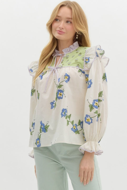Entro Mixed Floral Yoke Top